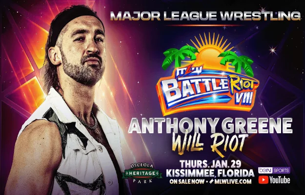 En otro día de noticias dentro del pro wrestling, más concretamente de MLW, os traemos que Anthony Greene estará en MLW Battle RIOT donde participará en el Battle RIOT Match.