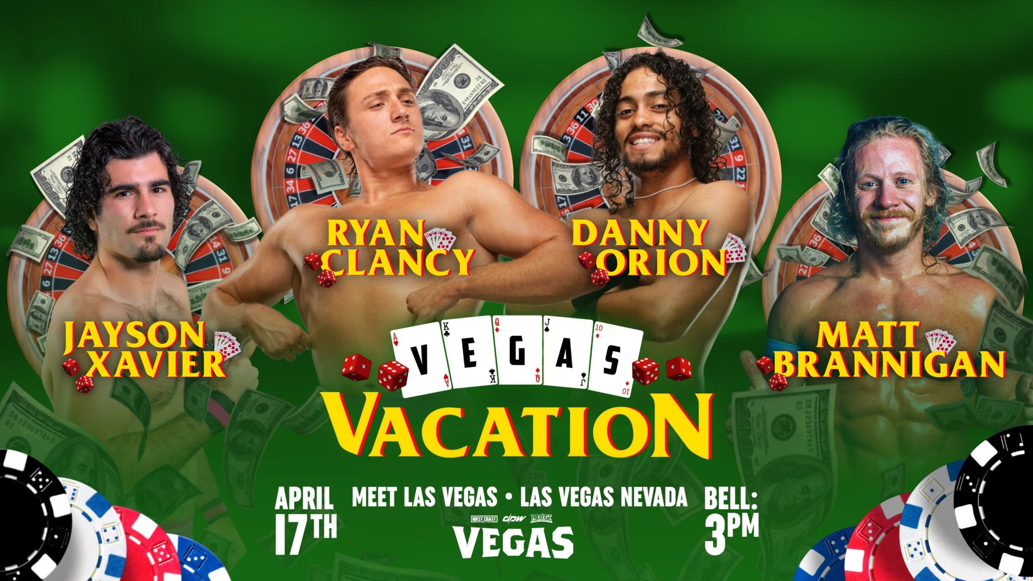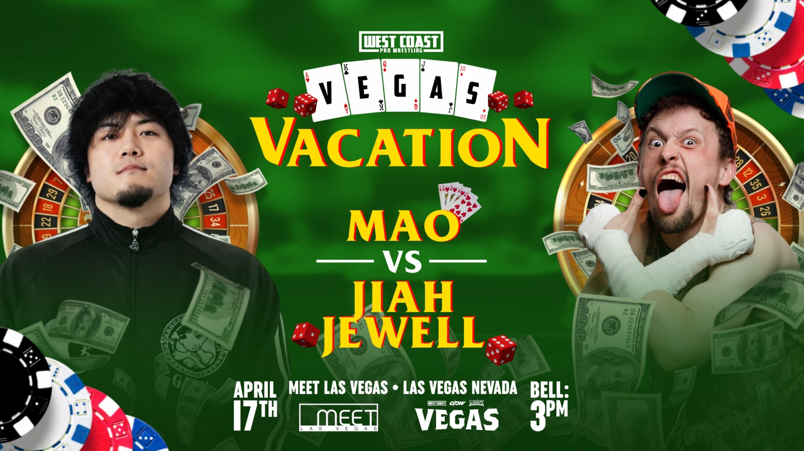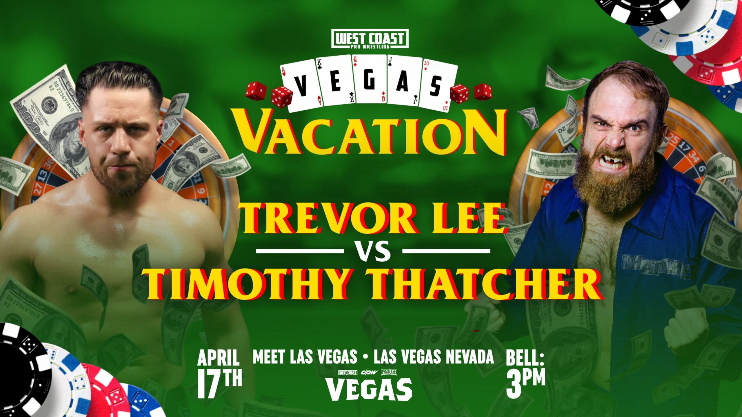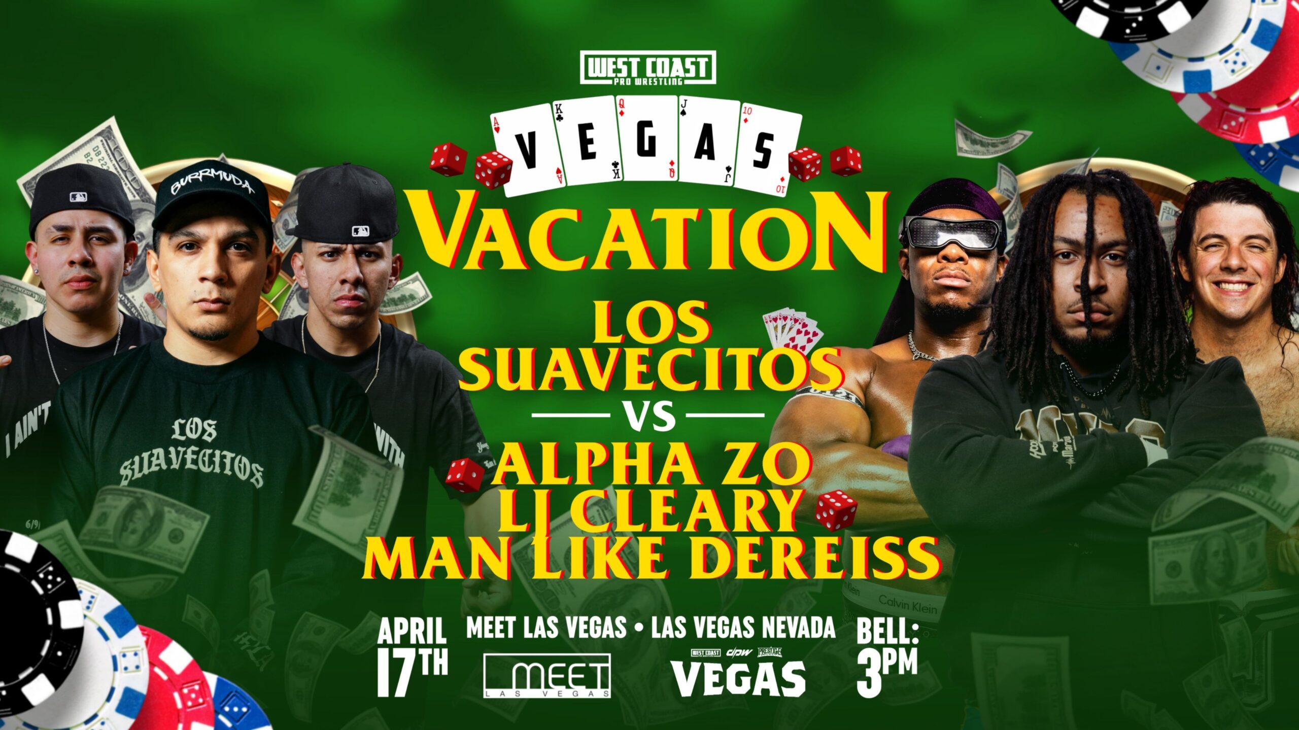 La empresa West Coast Pro Wrestling confirmó la cartelera para su próximo gran evento VEGAS Vacation el 17 de abril en Las Vegas, Nevada. Este será el show de celebración del 25 aniversario de la compañía.