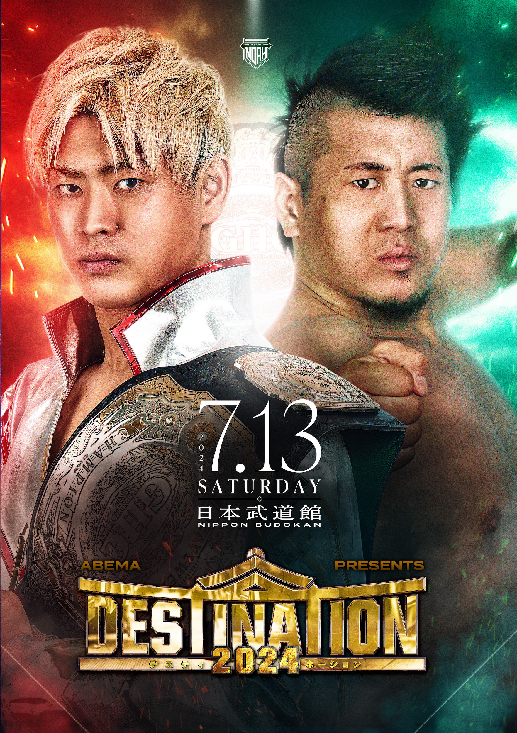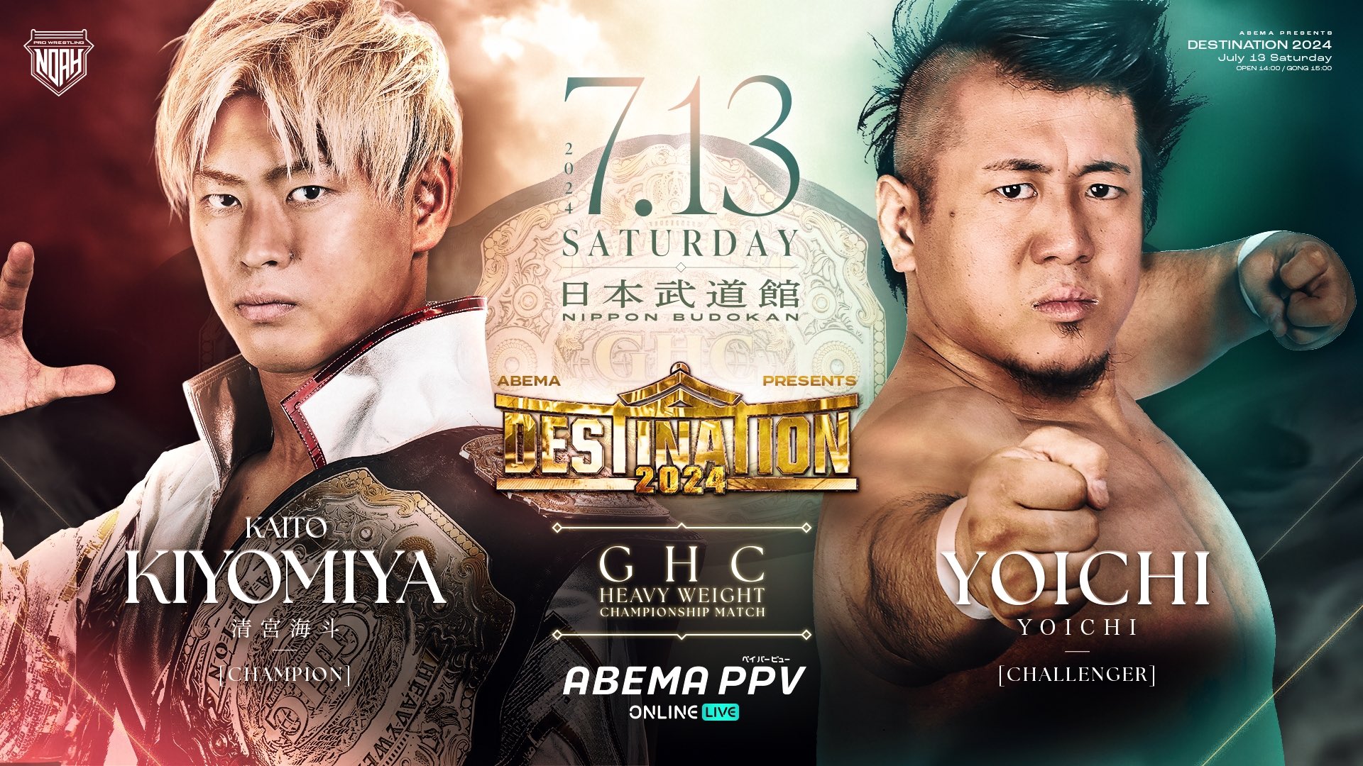 Pro Wrestling NOAH realizará DESTINATION 2024, su siguiente show PPV, el 13 de julio. La cartelera incluye varios combates por Campeonatos, uno de ellos por el GHC Heavyweight Championship. Kaito Kiyomiya, luchador japonés, Ace de NOAH y actual Campeón de la división Heavyweight de la compañía, defenderá el Campeonato ante YOICHI en el evento estelar.