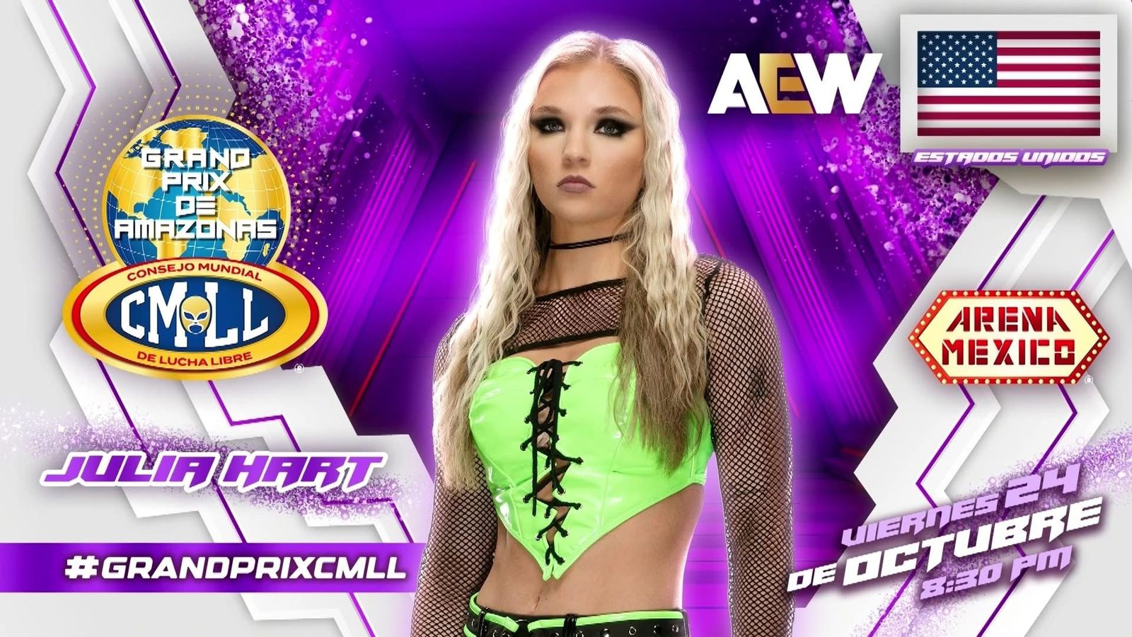 El CMLL se viene preparando para una nueva edición del Grand Prix de Amazonas, uno de los eventos más importantes del año. En la edición del 2025, el CMLL ha logrado armar una alineación envidiable aprovechando todas las alianzas que tiene en el mundo y habrá luchadoras de AEW, ROH, STARDOM, MLW y RevPro enfrentando a las Amazonas del CMLL. Una de las participantes que hará su debut es Julia Hart, miembro de AEW y de la facción Triangle of Madness. Como parte de los preparativos para el Grand Prix de Amazonas, Pep S. Caro tuvo oportunidad de conversar brevemente con Julia.