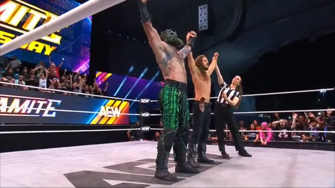 El episodio de AEW Dynamite del 7 de octubre de 2025 dejó una de las escenas más impactantes del año en la empresa. El regreso de Jurassic Express —formado por Jack Perry (Jungle Boy) y Luchasaurus— marcó un momento muy esperado por los fanáticos, ya que el dúo volvió a la acción tras varios meses de ausencia. En su combate de retorno, derrotaron con facilidad a un par de talentos locales, mostrando su gran química y energía renovada.