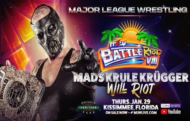 El actual MLW World Heavyweight Champion, Mads Krule Krügger, pondrá en juego el máximo título de la empresa en la emblemática extravaganza de 40 luchadores de MLW, el jueves 29 de enero en el Osceola Heritage Park Events Center en Kissimmee, Florida.