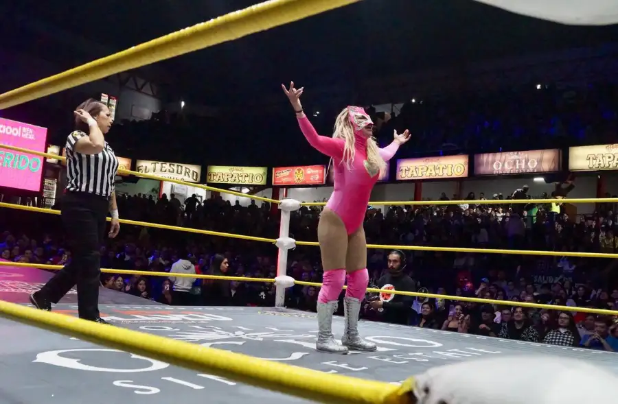 Posteriormente, Las Chicas Indomables (La Jarochita y Lluvia) derrotaron a Miss Guerrera y Zeuxis por 2-1, en una lucha clave para la división femenil, destacando la experiencia y coordinación del equipo ganador.