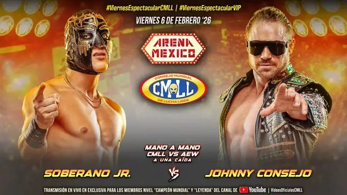 Más adelante, Soberano Jr. brilló en un combate individual al derrotar a Johnny Consejo, reafirmando su posición como uno de los estandartes modernos de la empresa.