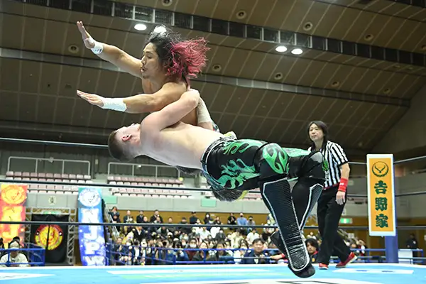 Más adelante, El Desperado, Shota Umino y Yuya Uemura se impusieron a Unbound Co. (Daiki Nagai, OSKAR y Yuto-Ice), consolidando el buen momento del trío técnico.
