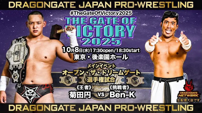 La gira The Gate of Victory 2025 hizo una de sus paradas más esperadas el 8 de octubre en el legendario Korakuen Hall de Tokio, ante 1.118 aficionados y transmisión en vivo por Dragon Gate Network. El evento ofreció una combinación perfecta de velocidad, técnica y emoción, culminando con dos combates titulares de alto nivel.