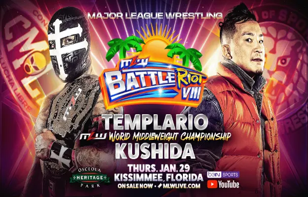Con el MLW World Middleweight Championshipen juego, Battle RIOT presenta un choque entre el poder bruto y la precisión forjada en campeonatos. Templario busca continuar su reinado dominante y seguir esculpiendo su legado como el campeón más imponente de la división, mientras que KUSHIDA intenta hacer retroceder el reloj y añadir otro campeonato mundial a su ilustre currículum.