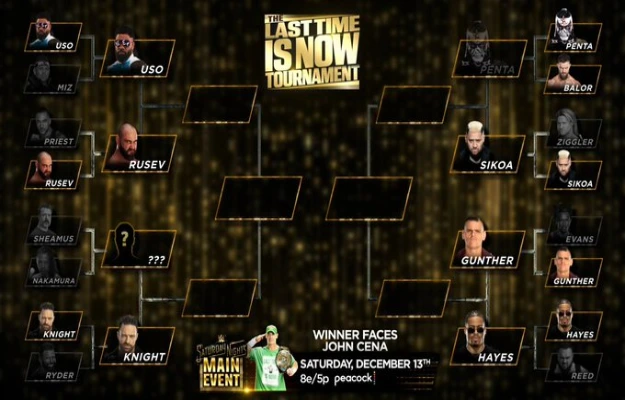 Después de que WWE SmackDown concluyera con los últimos combates de la primera ronda del torneo “The Last Time Is Now”, WWE finalmente ha revelado el bracket completo que determinará quién será el rival final de John Cena en Saturday Night’s Main Event el próximo 13 de diciembre. Con todos los enfrentamientos de segunda ronda confirmados —a excepción de uno— el torneo entra en su fase decisiva.